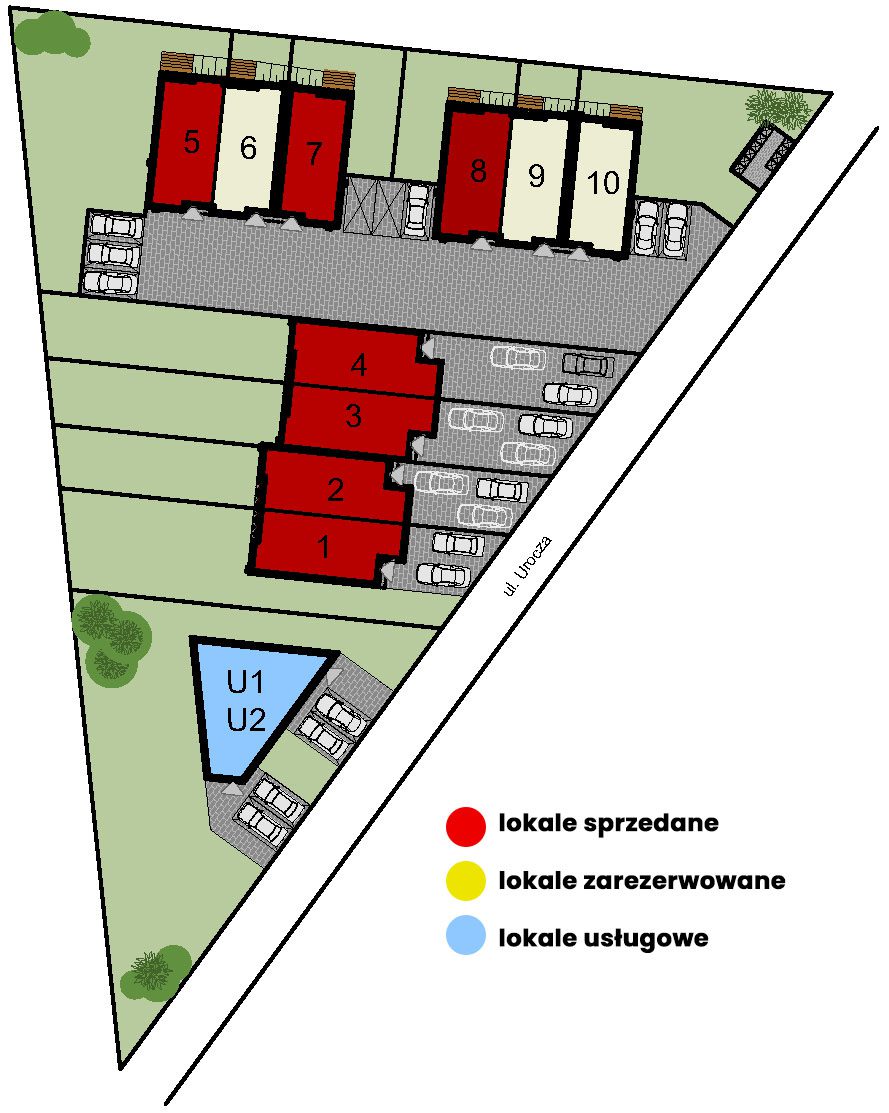 Urocze jest inwestycją wpisującą się w trend kameralnych osiedli w zabudowie szeregowej i bliźniaczej zlokalizowanych blisko terenów zielonych i rekreacyjnych.